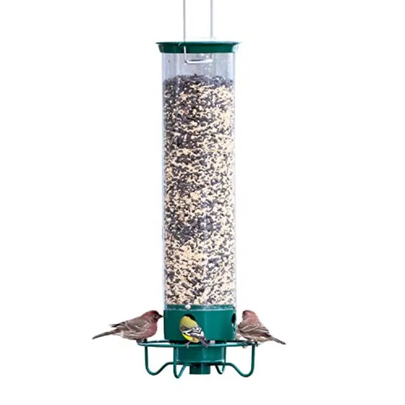 Less Seed WasteThe feeder’s squirrel-proof design ensures less seed waste, which means money saved and fewer messes on the ground. Plus, the large 5 lb seed capacity ensures you won’t have to worry about birds emptying your feeder too quickly during peak feeding times. Convenient internal baffles also help to keep seed flowing freely to the ports as birds feed. |